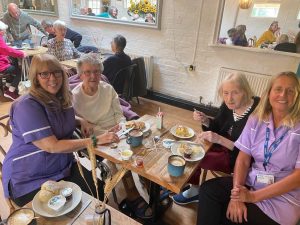 The residents and staff managed to sit outside again this week to enjoy their coffee and cake! We have been very grateful to have such lovely sunshine recently!