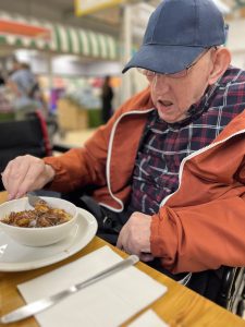 This morning I had the pleasure of taking our lovely Fred to meet a friend in Hanley for a meal, where he had a hot bowl of homemade cottage pie and freshly baked sponge with custard! It was a lovely outing and we walked there and back in the sunshine. It’s always so special to facilitate these meet ups for Fred to spend time with such a treasured friend ❤️
