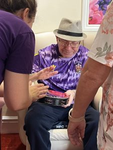 The home was decorated in a seaside theme and the day began with an amazing performance from Pantastic, a steel band duo to give beach vibes. This got everyone singing and dancing in seats. In the afternoon, we fired up the BBQ and residents enjoyed fun games of their choice.